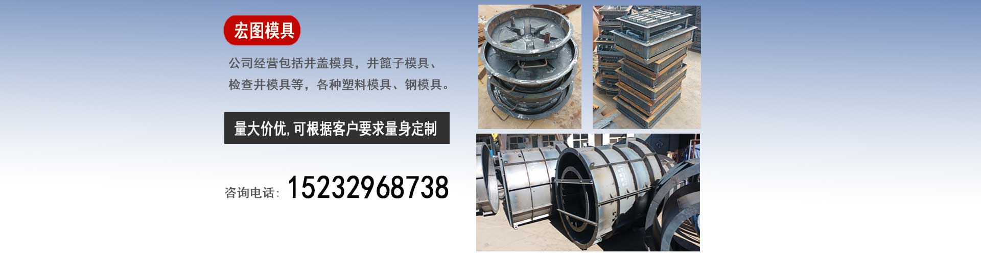 保定宏圖模具科技有限公司專業(yè)生產(chǎn)井蓋模具,檢查井模具,隔離墩模具質(zhì)優(yōu)價(jià)廉。我們生產(chǎn)的模具產(chǎn)品質(zhì)量強(qiáng)勁、經(jīng)久耐用。是您值得信任的選擇。我們堅(jiān)持以客戶第一位原則。以客戶需求為我們的發(fā)展方向。不斷地提高擴(kuò)大我們的生產(chǎn)范圍、生產(chǎn)能力,滿足客戶的對(duì)模具的一切要求,隨時(shí)保持與市場(chǎng)的無縫鏈接。真正的做到市場(chǎng)上的“需要我們有什么、客戶需要什么我們滿足什么”。我廠生產(chǎn)的模具具有光亮度高、韌性強(qiáng)、不變形、易脫模、破損率低等特點(diǎn),產(chǎn)品銷往全國(guó)各地,并受到了廠家的青睞和好評(píng)。